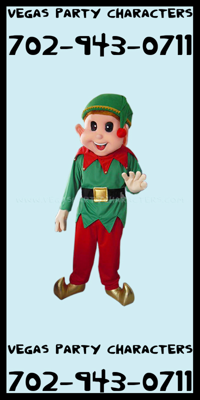 Our Elf mascot character is available for singing telegrams, birthday parties, corporate events, wedding appearances, and many other types of group events! If you would like to hire one of our entertainers to come out to your event in the Elf mascot character costume, please click here to reserve our Elf mascot character online or give us a call at 702-943-0711! Click on the image below to see a larger image of our Elf mascot character costume!